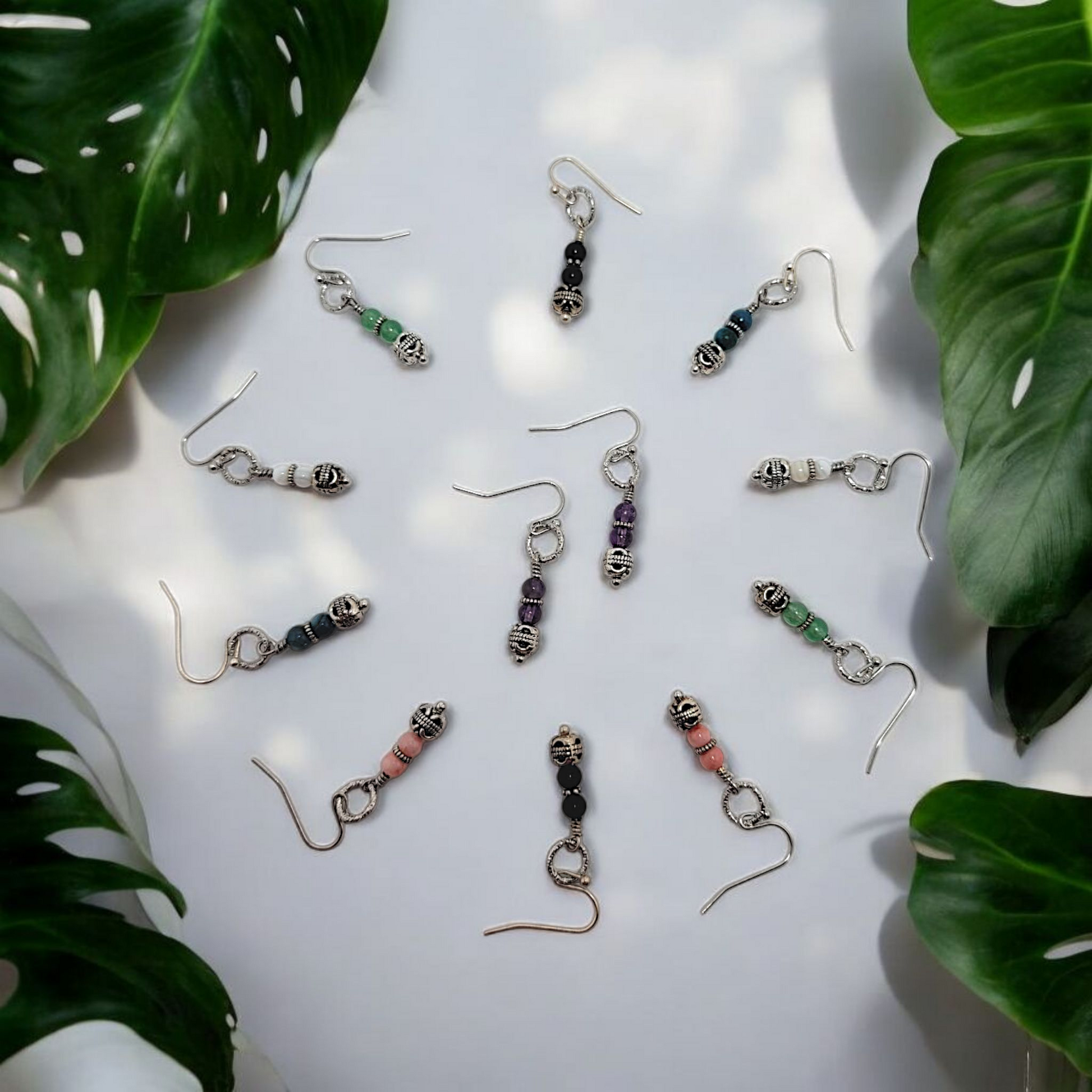Simple, stylish, and effortlessly versatile—the Beaded Charm Drop Earrings are your go-to accessory for any occasion. Each pair features a duo of vibrant beads paired with silver-tone charm accents for a subtle touch of texture and shine.