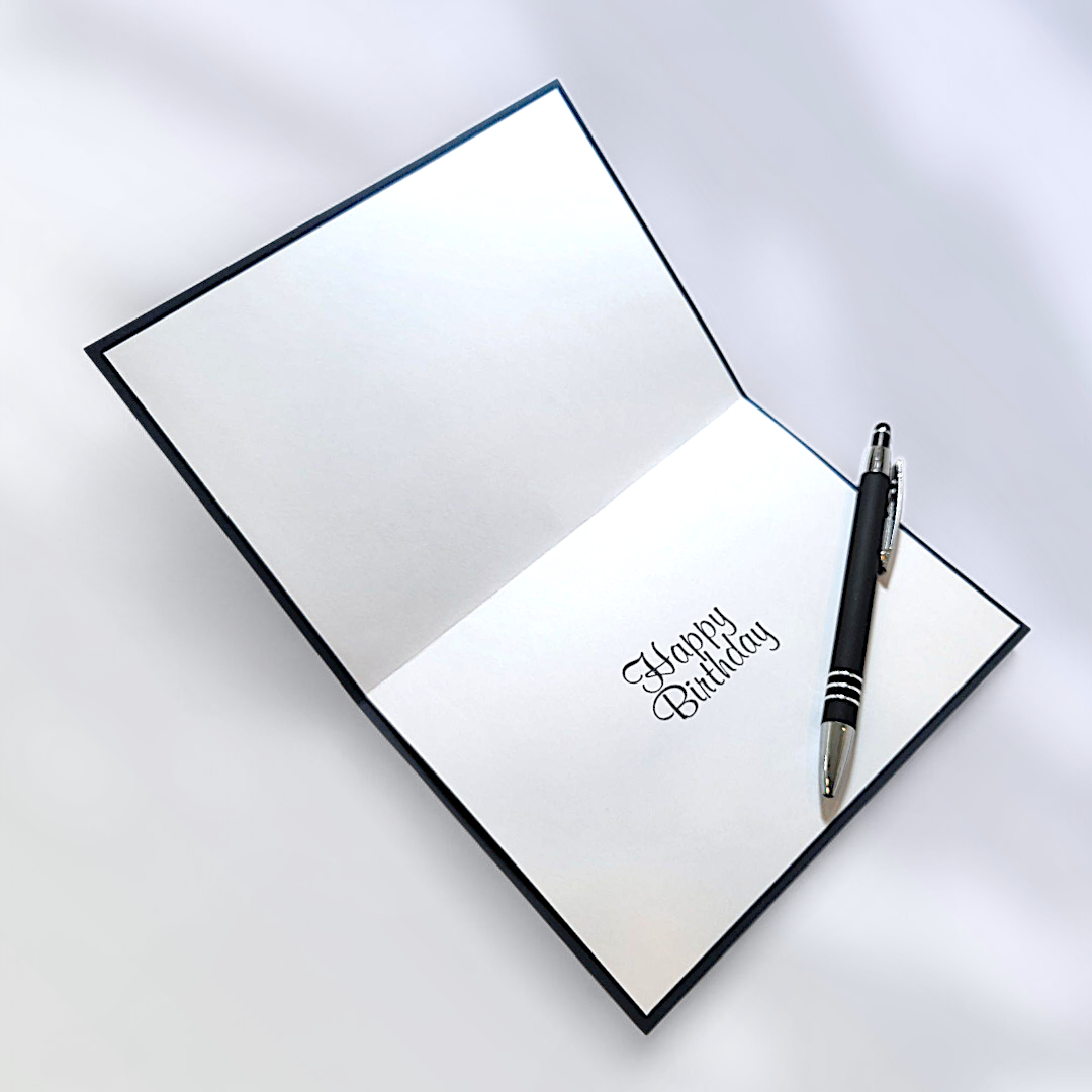 Available as a 5x7 individual birthday greeting card, Wings of Happiness, is printed on high-quality cardstock with Happy Birthday printed in the interior—perfect for heartfelt birthday wish to give or send through the mail.