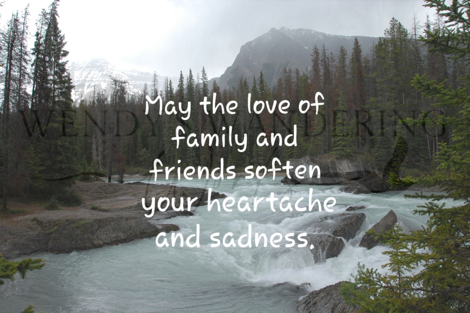 A powerful river surges over rugged rocks, framed by tall pine trees and distant Colorado mountains. Nature’s strength and beauty echo the message printed on the photo: “May the love of family and friends soften your heartache and sadness.” Strength in Sadness offers a heartfelt expression of sympathy, reminding the recipient that even in life’s most turbulent moments, there is support, love, and enduring peace.