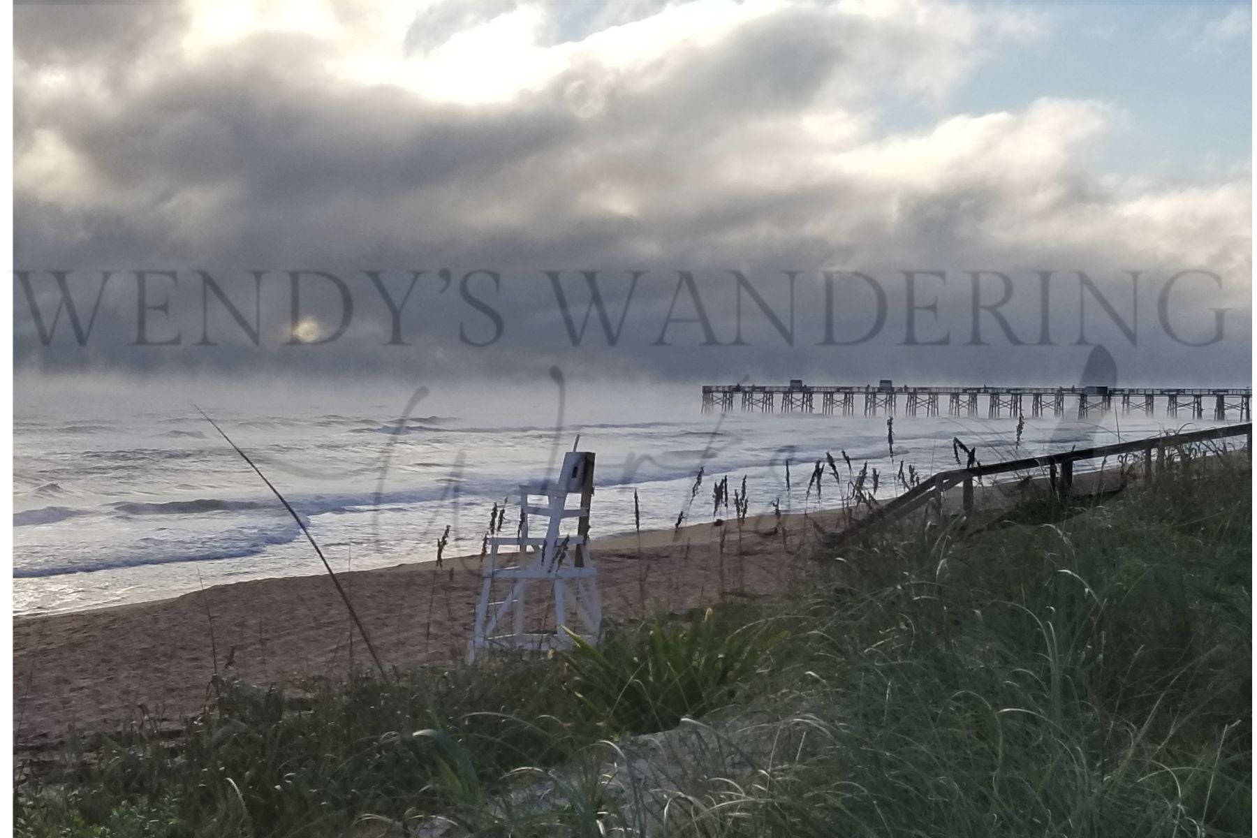 Still and contemplative, Morning Watch captures the quiet strength of a lone lifeguard stand facing the rising sun, as mist curls along the shoreline and storm-touched clouds drift overhead. The soft light breaking through the gloom casts a silvery glow across the waves, blending serenity with subtle tension. Framed by dune grass and the distant pier, this coastal moment evokes solitude, resilience, and the quiet anticipation of a new day.