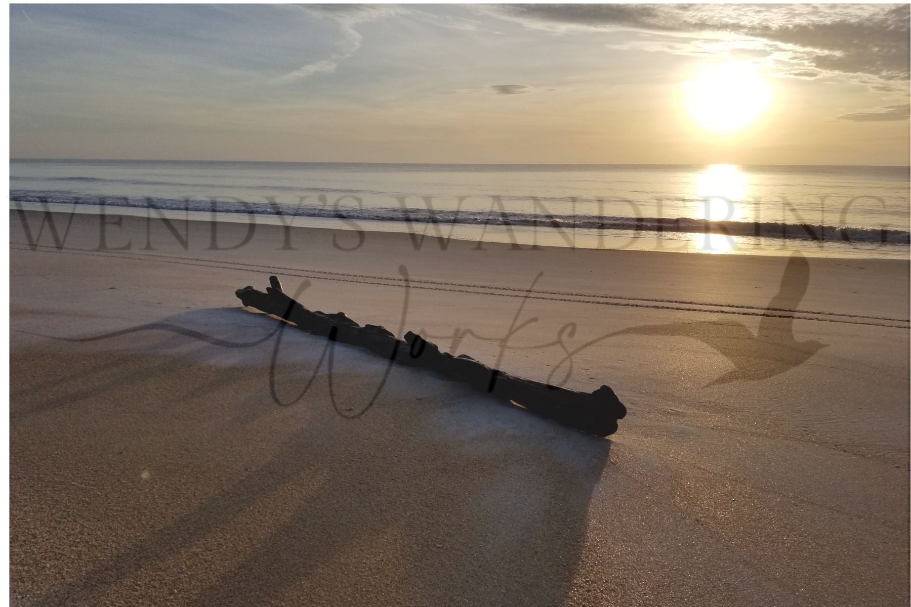 Bathed in the gentle glow of sunrise, this weathered log rests quietly on the shoreline, its journey from forest to sea now paused in serene stillness. The warm hues of early light kiss the ocean behind it, creating a tranquil blend of earth, water, and sky. A silent witness to time and tide, the log becomes a natural sculpture in the soft morning light—simple, grounded, and beautiful.