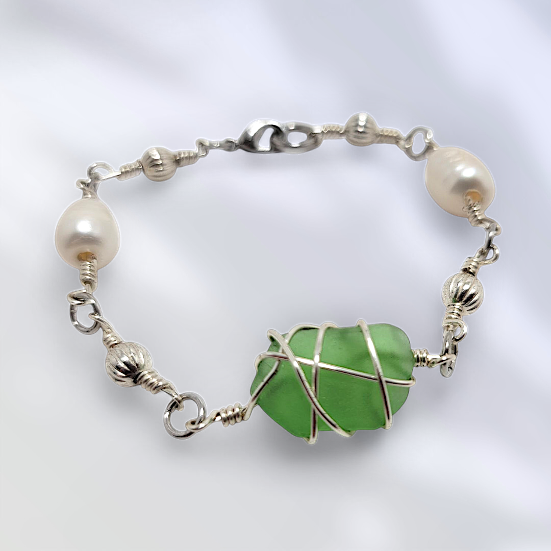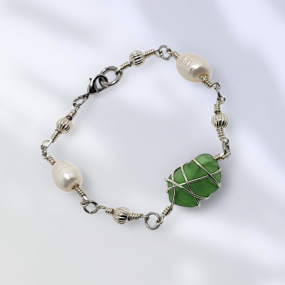 Emerald Shore- Hand Wrapped Sea Glass Bracelet