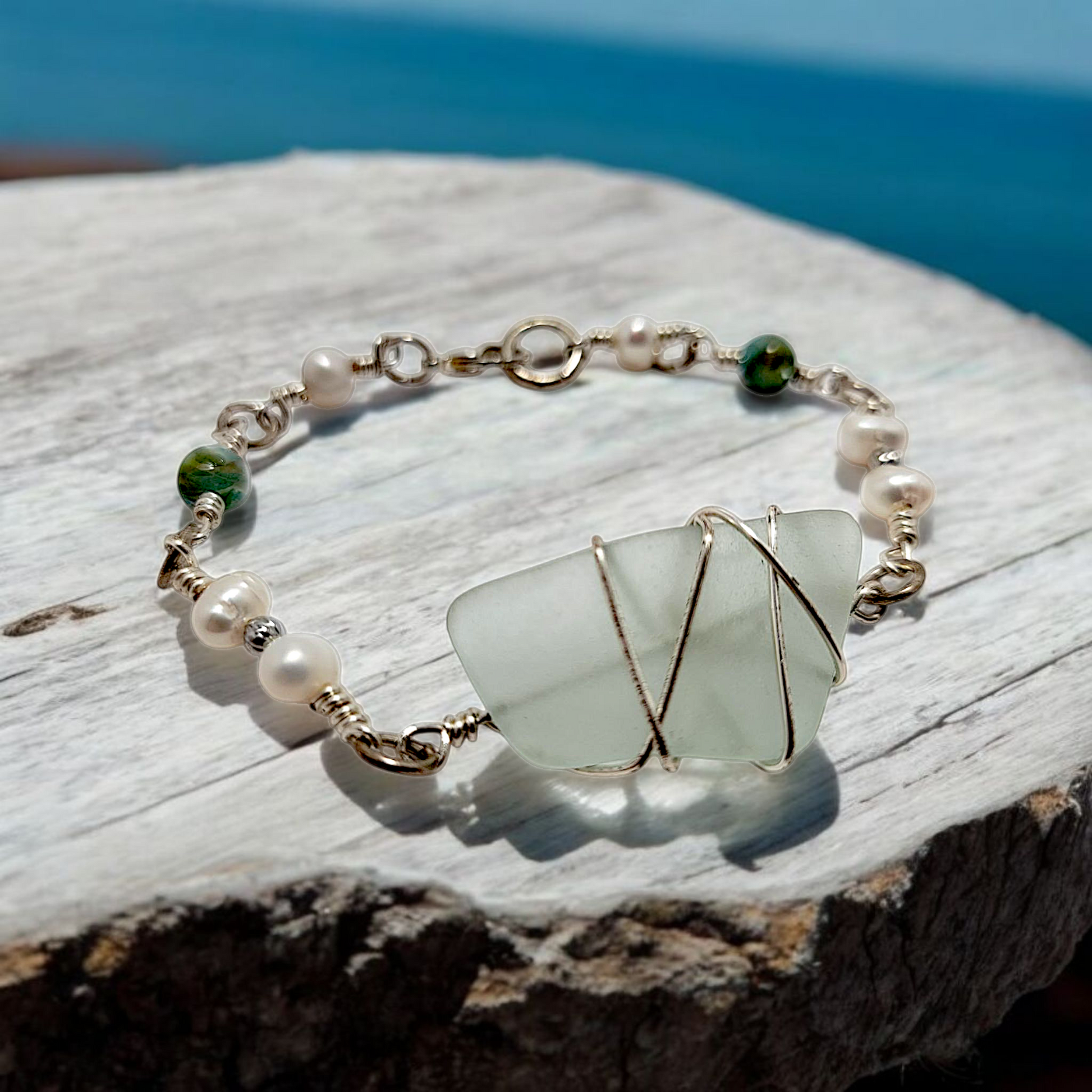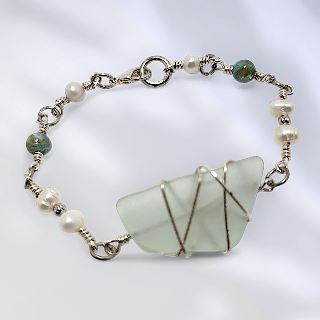 Coastal Calm- Hand Wrapped Sea Glass Bracelet