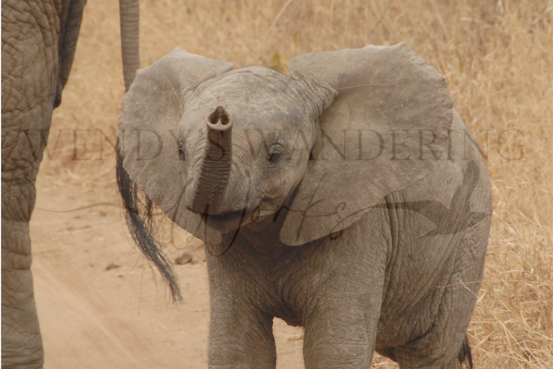 With its trunk lifted high in playful curiosity, this young elephant calf offers a tender glimpse into the innocence and wonder of the wild. Only part of its body is visible, drawing you in closer to the expressive face and wide, searching eyes. The image captures a fleeting, heartwarming moment—both powerful and endearing—perfect for those who find beauty in the details of nature’s gentle giants.