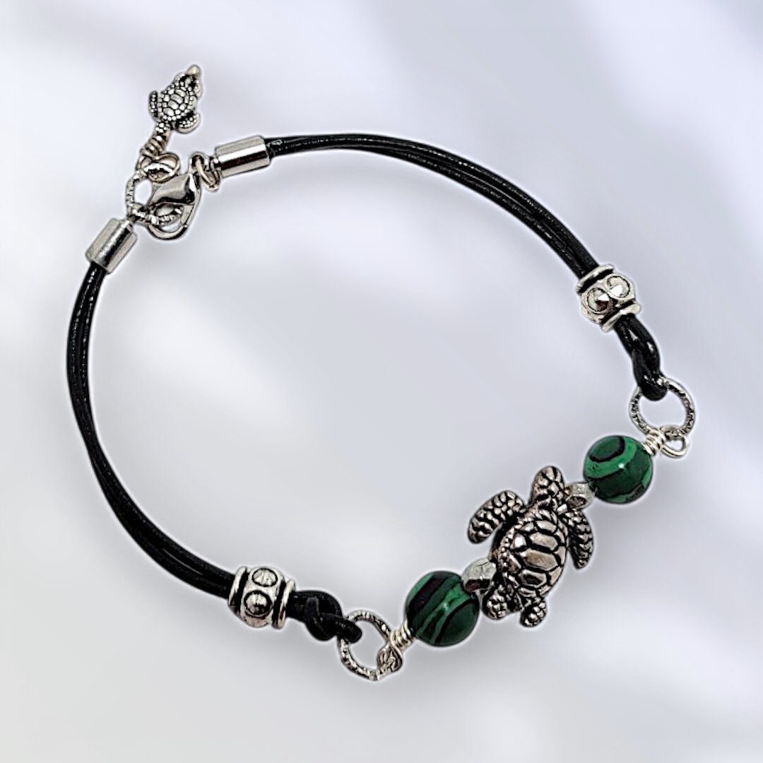 Perfect on its own or as part of a set, the Leather Turtle Bracelet pairs beautifully with the matching Leather Turtle Drop Earrings for a coordinated, coastal-inspired look.