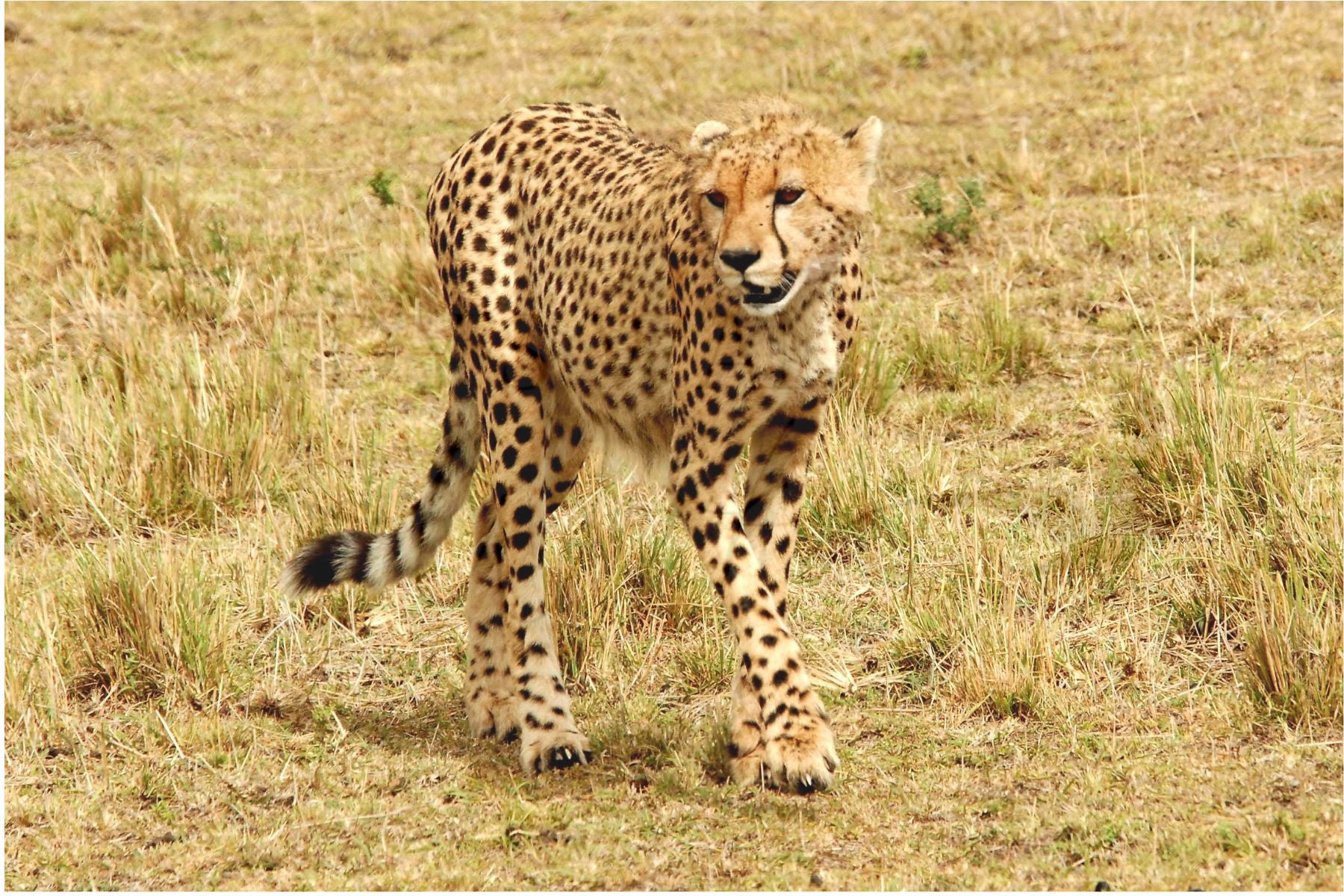 With eyes locked forward and each step measured, this solitary cheetah glides through the tawny grasslands of Africa with quiet intensity. The golden light catches the sleek curve of its frame, a portrait of grace and quiet power in motion. This moment captures the essence of a predator’s poise—unhurried, focused, and utterly mesmerizing.