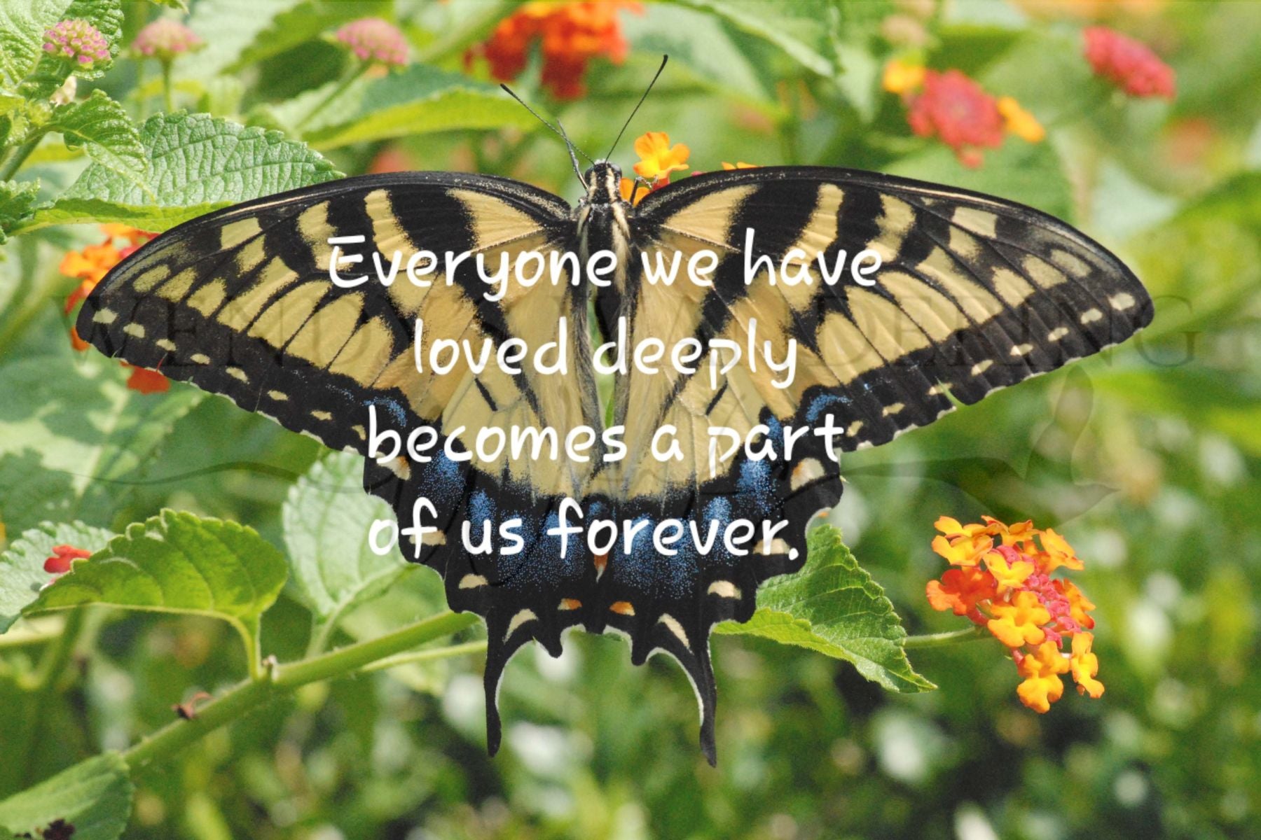 With wings fully outstretched, a Tiger Swallowtail butterfly faces the camera in a moment of quiet stillness and grace. The soft details of its delicate form echo the gentle truth written across the image: “Everyone we have loved deeply becomes a part of us forever.” Forever Part of Us is a heartfelt sympathy card offering comfort and remembrance—honoring the lasting imprint of love that never fades.
